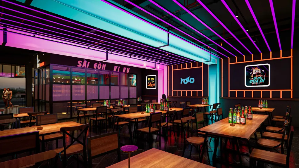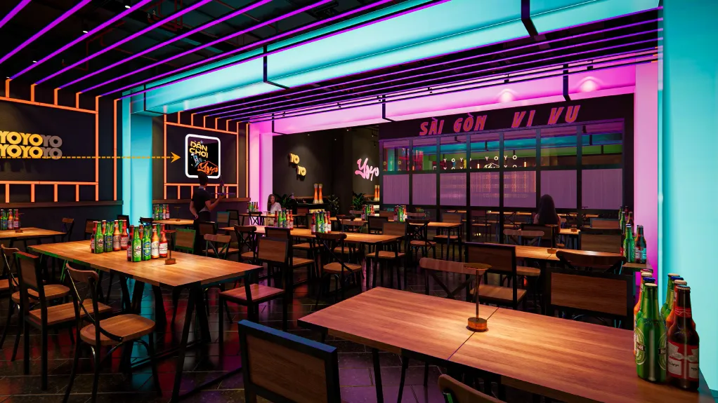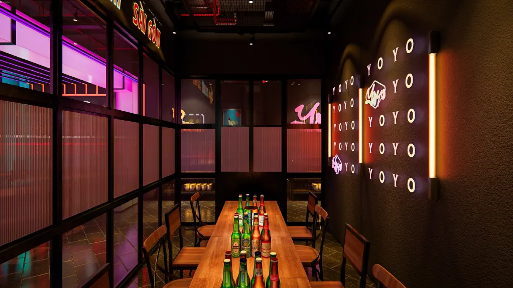 Giữa nhịp sống sôi động của Quận 1, Yoyo Ngô Đức Kế mang đến một không gian mở gần gũi, nơi mọi người dễ dàng trò chuyện, chia sẻ và tận hưởng bữa ăn cùng nhau. Thiết kế ấm cúng, ánh đèn vàng dịu nhẹ và cách bố trí bàn hợp lý tạo nên bầu không khí vừa thân mật, vừa năng động – hoàn hảo cho các buổi gặp gỡ bạn bè, sum họp gia đình hay tiệc liên hoan công ty.